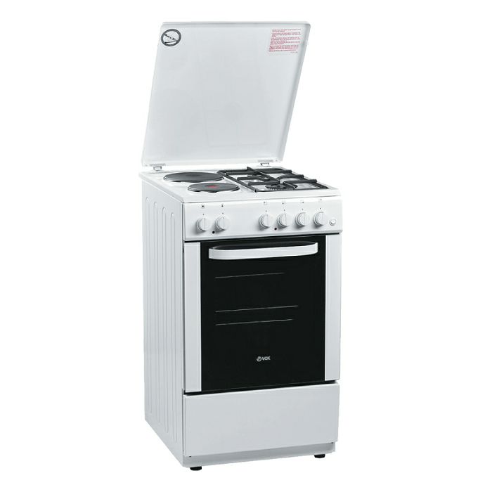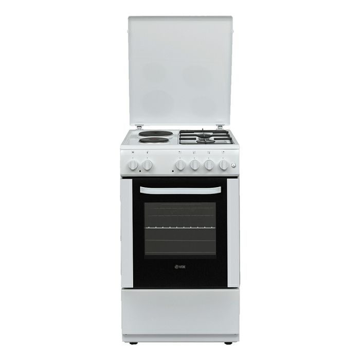 xTehničke karakteristike: - Kombinirano kuhalo: 2x plin, 2x struja- Energetski razred: B- Zapremina pećnice: 53 l- Timer- Snaga roštilja: 2000W- Boja: bijela- dimenzije (VxŠxD): 85 x 50 x 60 cmJamstvo: 5 godina