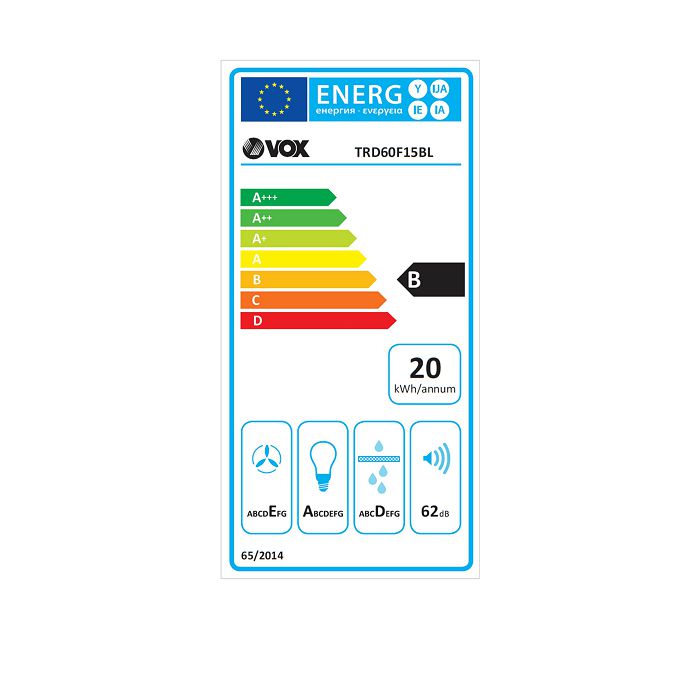 VOX kuhinjska napa TRD 60F15 BL [B, 2 brzine, pret: max. 200m3, crna]