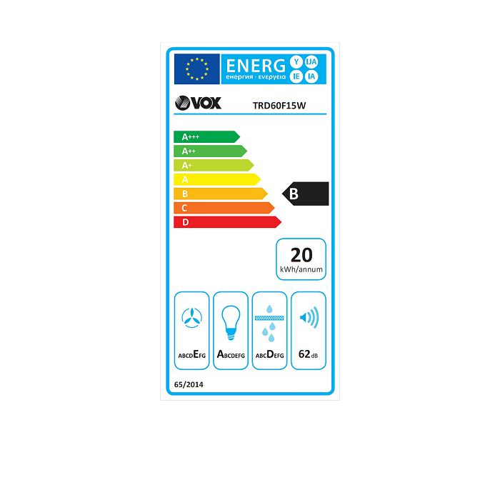 VOX kuhinjska napa TRD 60F15 W [B, 2 brzine, pret: max. 200m3, bijela]
