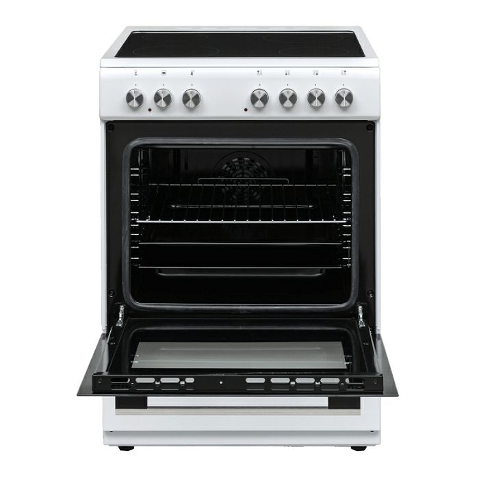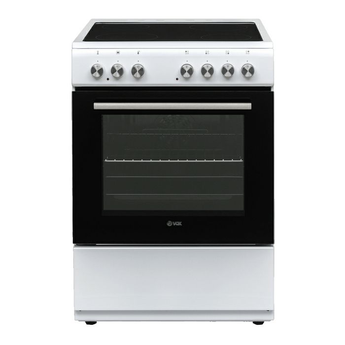 Vox staklokeramički štednjak s četiri ploče za kuhanje i električnom pećnicom od 69 litara kvalitetan je, učinkovit i pristupačan kuhinjski pomoćnik. Pećnicu odlikuju dva grijača, gornji radi snage 1200 W, a donji 1100 W. Štednjak ima osvijetljenu unutrašnjost pećnice, što osigurava izuzetno ugodno i transparentno korištenje. Opremljen je indikatorom temperature staklokeramičke ploče i indikatorom rada termostata. Štednjak također ima kabel za napajanje, dvije ladice, kromiranu rešetku, skidiva vrata pećnice, mjerač vremena i termostat. Dodatnu praktičnost pružit će velika donja ladica u koju možete odložiti posuđe.