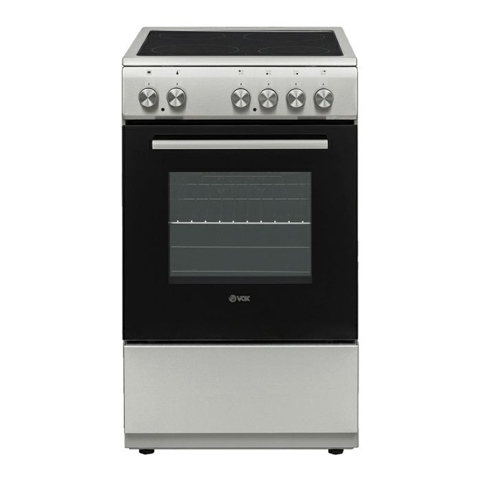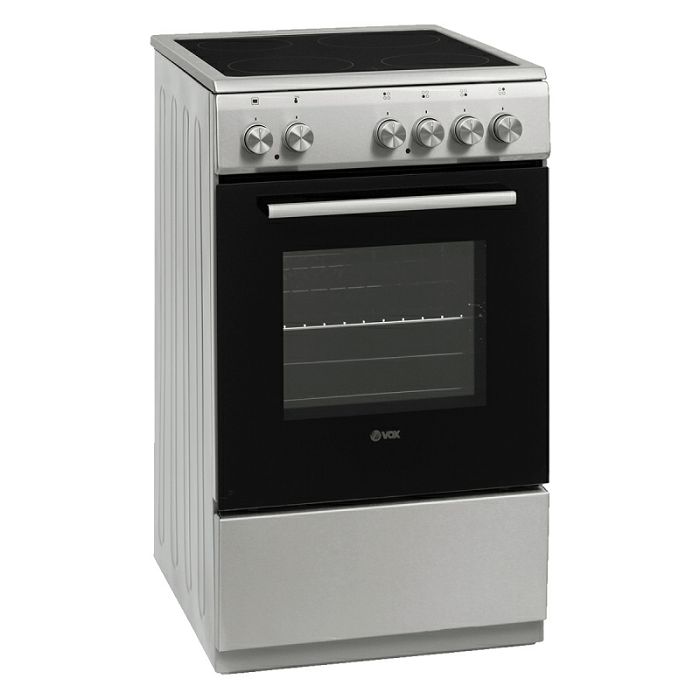 Vox staklokeramički štednjak s četiri grijaće ploče i električnom pećnicom od 53 litre kvalitetan je, učinkovit i pristupačan kuhinjski pomoćnik. Pećnicu odlikuju dva grijača, gornji radi snage 1000 W, a donji 1000 W. Štednjak ima osvijetljenu unutrašnjost pećnice, što osigurava izuzetno ugodno i transparentno korištenje. Opremljen je indikatorom temperature staklokeramičke ploče i indikatorom rada termostata. Štednjak također ima kabel za napajanje, dvije ladice, kromiranu rešetku, skidiva vrata pećnice, mjerač vremena i termostat. Dodatnu praktičnost pružit će velika donja ladica u koju možete odložiti posuđe.