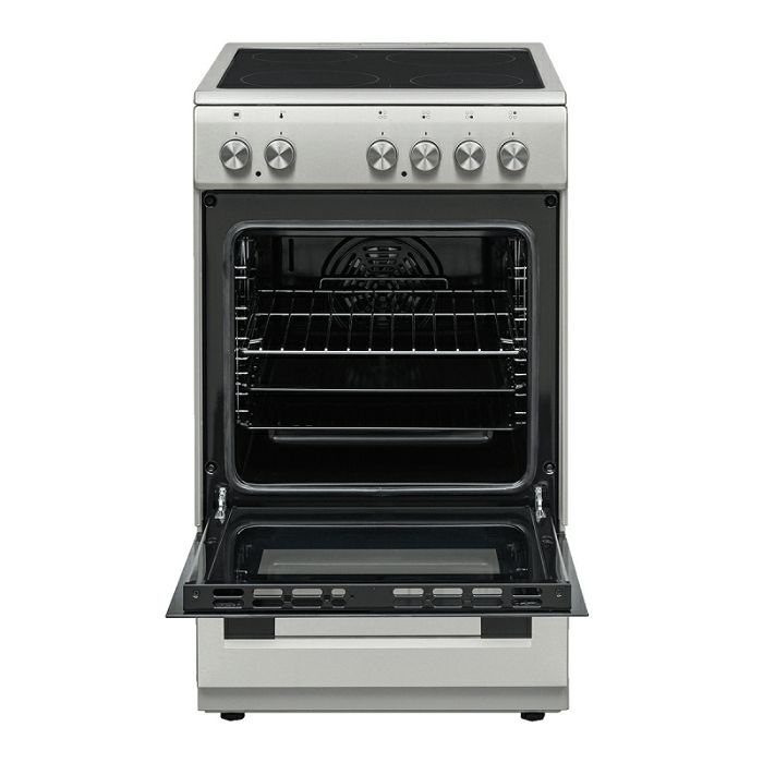 TEHNIČKE SPECIFIKACIJE: - Vrsta: staklokeramička peć - Energetski razred: A - Vrsta grijača: staklokeramika * Ploča 1: staklokeramička ploča za kuhanje 145 mm, 1200 W * Ploča 2: staklokeramička ploča za kuhanje 145 mm, 1200 W * Ploča 3: staklokeramička ploča za kuhanje 180 mm, 1800 W * Ploča 4: staklokeramička ploča za kuhanje 180 mm, 1800 W - Vrsta pećnice: električna - Zapremina pećnice: 53 l - Broj funkcija pećnice: 8 - Funkcija odmrzavanja: da - Kromirana rešetka: 1 kom - Gratis tepsija (plitka): da - Gratis pleh (duboki): da - Uklonjiva vrata pećnice: da - Ladica: da - Visina s podignutim poklopcem: 1450 mm - Dubina s otvorenim vratima: 1050 mm - Ukupna električna snaga: 8500 W - Gornji grijač: 1000 W - Donji grijač: 1000 W - Električni roštilj: 1600 W - Indeks energetske učinkovitosti - standard: 106,1 - Indeks energetske učinkovitosti - s ventilatorom: 94,5 - Potrošnja električne energije - standard: 0,82 kWh/ciklus - Potrošnja električne energije - s ventilatorom: 0,73 kWh/ciklus - Funkcija ventilatora: da - Statička funkcija pečenja: da - Funkcija donjeg grijača s ventilatorom: da - Brža funkcija roštilja: da - Timer: mehanički - Termostat: da - Boja: nehrđajući čelik - Dimenzije uređaja (VxŠxD): 850 x 500 x 600 mm - Dimenzije zapakiranog uređaja (VxŠxD): 922 x 545 x 684 mm - Neto težina: 39,67 kg - Bruto težina: 40,8 kg