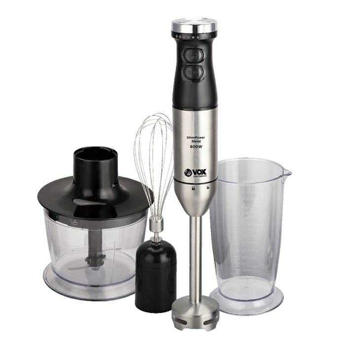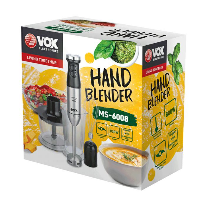 Uz VOX štapni mikser MS-608, zahvaljujući snažnom motoru od 800 W, brzo ćete i učinkovito izmiksati ili izblendati sve željene i potrebne sastojke i tako još bolje pripremiti svoja omiljena jela. Priložena posuda za miješanje s mjernom ljestvicom omogućit će jednostavno odmjeravanje potrebne količine, a ergonomski oblikovana ručka savršeno će pristajati vašoj ruci te tako omogućiti jednostavno, udobno i sigurno korištenje. Sigurnost će također biti osigurana sigurnim pričvršćenjem inače uklonjive noge za miješanje s bajunet bravom. Korištenje štapnog miksera MS-6008 potpuno je jednostavno, bez dosadnog prskanja, zahvaljujući inovativnom novom obliku stopice za miješanje. Svi dijelovi se također lako čiste i održavaju jer su prikladni za pranje u perilici posuđa.