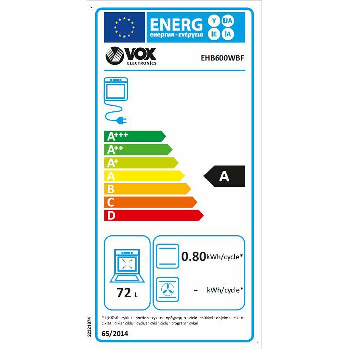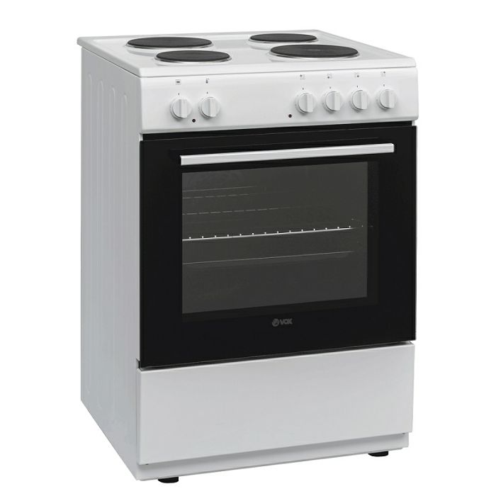Vox Electronics električni štednjak EHB 600 WBF predstavlja izvrstan omjer dobre cijene i dobrih specifikacija. Spada u energetski razred A. Štednjak ima 4 električne ploče za kuhanje. 2 ploče za kuhanje imaju promjer 180 mm i 2 145 mm. Ispod je ugrađena ventilatorska pećnica zapremine 72 litre. S dva pleha moći ćete istovremeno peći veće količine hrane. Štednjak je opremljen indikatorom rada električne ploče i indikatorom rada termostata. Glatka emajlirana i staklena površina omogućuje jednostavno čišćenje.