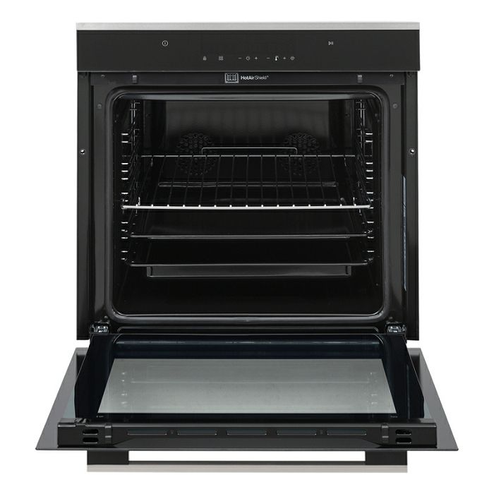Otkrijte našu vrhunsku električnu pećnicu s velikim volumenom od 73 l i razredom energetske učinkovitosti A. Kontrola na dodir omogućuje jednostavno upravljanje i precizno podešavanje funkcija pećnice. S funkcijama kao što su odmrzavanje, turbo način rada, donje grijanje, donje + gornje grijanje, donje + gornje + ventilator, pizza, dupli roštilj i 3D kuhanje, moći ćete napraviti raznolika i ukusna jela. Snažni grijaći elementi uključujući gornji grijač od 1200 W, donji grijač od 1100 W, termostatski roštilj od 1400 W i dvostruki termostatski roštilj od 2600 W osiguravaju brzo i ravnomjerno kuhanje. S tehnologijama kao što su HeatWrap, Hot Air Shield, 3D kuhanje i Vap Clean, postići ćete profesionalne rezultate kuhanja. Pećnica ima elegantnu upravljačku ploču od crnog stakla, puna staklena vrata s uklonjivim unutarnjim staklom i jednostavnim uklanjanjem. Priloženi dodaci, uključujući plitku tepsiju za pečenje, duboku tepsiju i kromiranu rešetku, pomoći će vam u pripremi raznih jela. S ukupnom snagom od max. S 3,1 kW, naprednom tehnologijom i elegantnim dizajnom, ova je pećnica idealan partner u vašoj kuhinji. Jamčimo vam bezbrižno korištenje uz 5 godina jamstva.