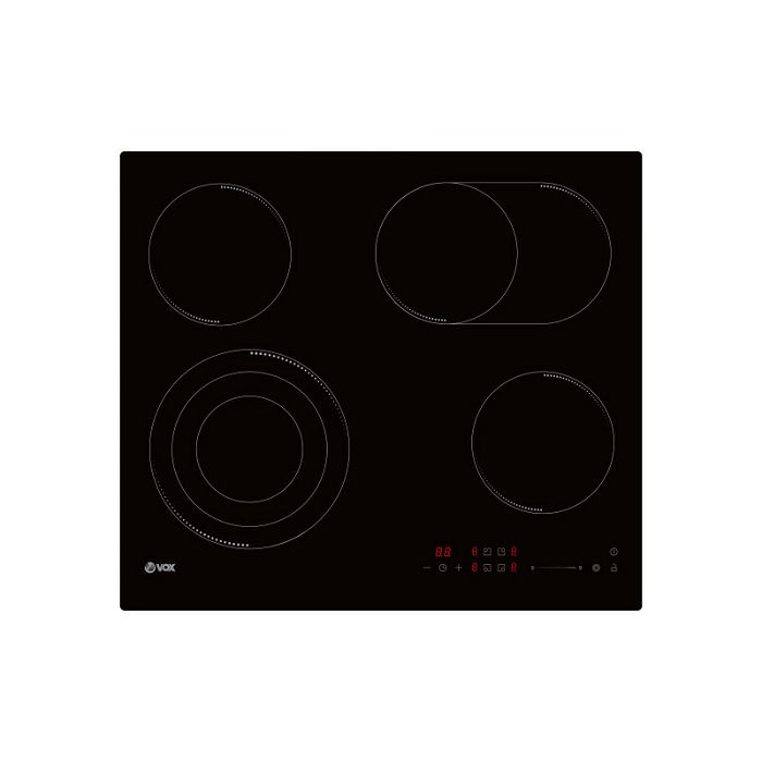 VOX EBC 425 ima moderan dizajn sa sjajnom crnom površinom od poliranog stakla koja se savršeno uklapa u svaku kuhinju. Zahvaljujući četiri zone za kuhanje s dodatnim dvostrukim i trostrukim zonama zračenja, omogućuje iznimnu fleksibilnost u kuhanju - od najmanjih lonaca do najvećih tava.