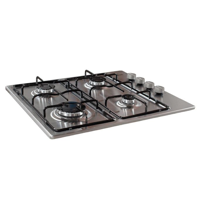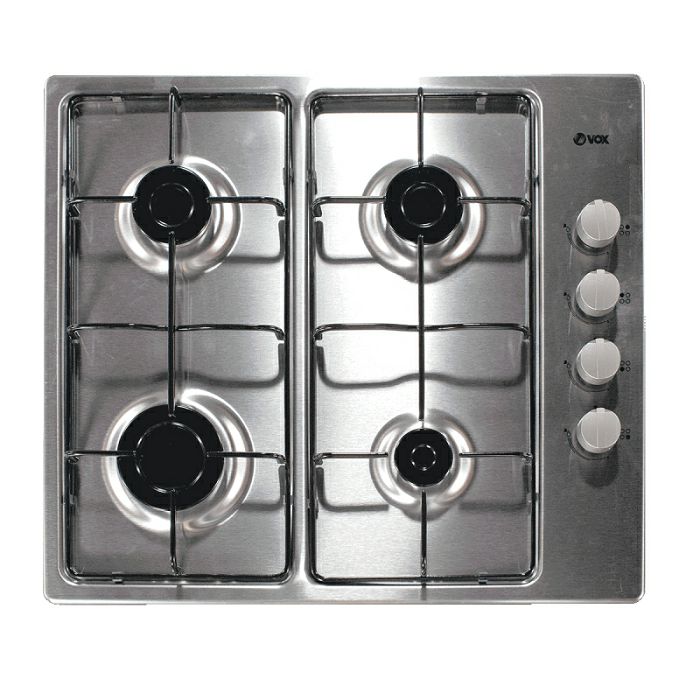 TEHNIČKE SPECIFIKACIJE: - Maksimalna ukupna električna snaga (kW): 7,5 - Vrsta ploče za kuhanje: plinska - Broj polja za kuhanje: 4 * tehnika grijanja 1: plin, veličina ploče (mm): 55 (pomoćna), snaga ploče (W): 1000 * tehnika grijanja 2: plin, veličina ploče (mm): 75 (polubrzo), snaga ploče (W): 1750, potrošnja energije (Wh/kg): 0,59 * tehnika grijanja 3: plin, veličina ploče (mm): 75 (polubrzo), snaga ploče (W): 1750, potrošnja energije (Wh/kg): 0,59 * tehnika grijanja 4: plin, veličina ploče (mm): 100, snaga ploče (W): 3000, potrošnja energije (Wh/kg): 0,57 - Vrsta kontrole: Bočni gumb - Svjetlo indikatora: indikator rada - Sigurnosni ventili plamenika: da - Komplet za pretvorbu plina: da (boca, gradski plin) - Boja: Nehrđajući čelik - Površina: mat - Dimenzije uređaja (V x Š x D) (mm): 40 x 580 x 510 - Dimenzije zapakiranog uređaja (V x Š x D) (mm): 130 x 626 x 560 - Neto težina (kg): 6,85 - Bruto težina (kg): 7,48