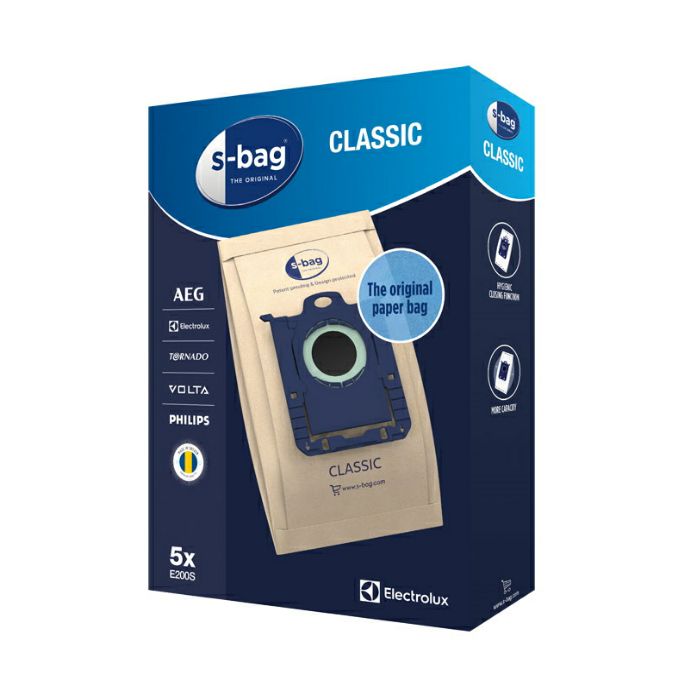 s-bag E200SVrećice za usisavač S-bag Classic je vrećica od visokokvalitetnog papira koja filtrira više od 95 % prašine i čestica, čime je učinkovitija od obične papirnate vrećice za usisavače.5 vrećica u paketu