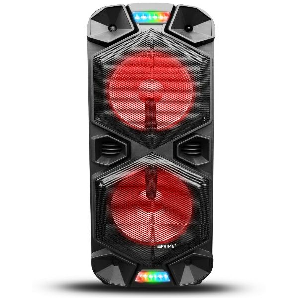 Zvučnik Prime APA30 Karaoke sa uključenim bežičnim mikrofonoim Audio streaming via Bluetooth USB/microSD player (max 32GB) MP3/WMA playback FM tuner Equalizer: Rock, Jazz, Classic, Flat, Pop, Normal 6,5 mm ulaz za mikrofon Daljinski upravljač AUX ulaz Reprodukcija do 4 h Punjenje: 4-6 h 220-240 V~ 50/60 Hz Baterija: 12 V, 7 Ah Dimenzije: 445 x 381 x 1083 mm Težina: 21.1 kg